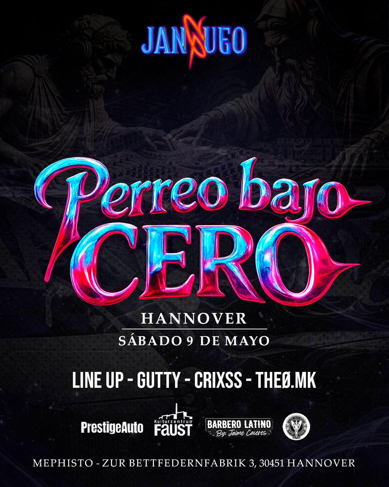 Jangueo ist nicht nur eine Party, es ist ein Konzept. Eine Reise zurück in die goldenen Zeiten des Reggaetóns, wo die zeitlosen Klassiker auf die angesagtesten Hits von heute treffen. Wir schaffen ein einzigartiges Erlebnis: Musik, Atmosphäre und Energie, die Dich in die besten Nächte von damals zurückversetzen, ohne den Moment von heute zu verlieren. Hier kommt man zusammen, um im Dunkeln loszulassen und die Nacht voll auszukosten.